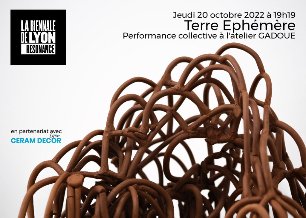 TERRE EPHEMERE Performance collective proposée par Lara Erel, Etienne Dubernet et Elpom En Résonance à la Biennnale de Lyon avec le soutien de Ceram Decor Lyon 20 octobre 2022, 19h19 Atelier GADOUE, 9 rue Mortier, 69003 Lyon En savoir plus : https://www.labiennaledelyon.com/fr/biennale/16e-biennale-dart-contemporain-2022/resonance/performance-participative-terre-ephemere Visualiser la VIDEO de la performance