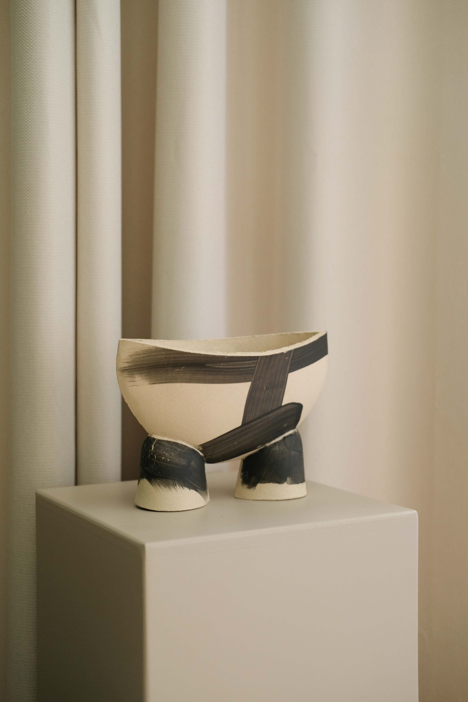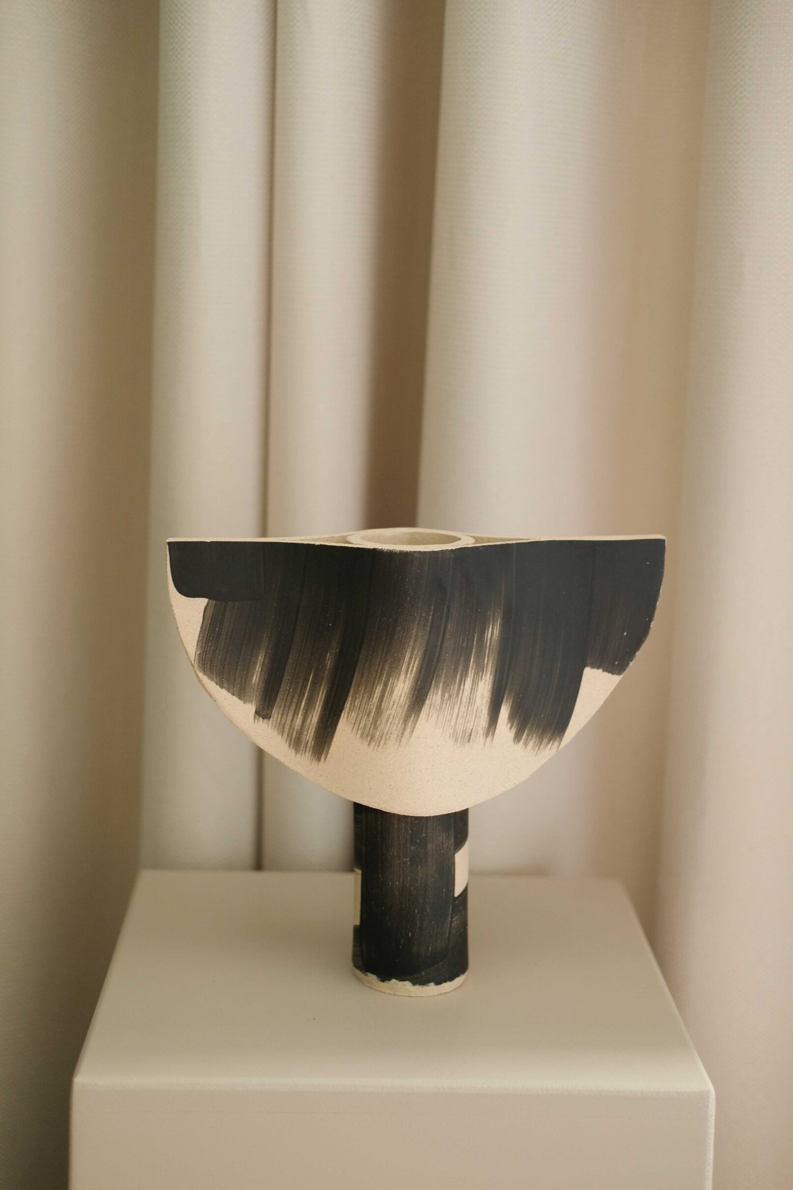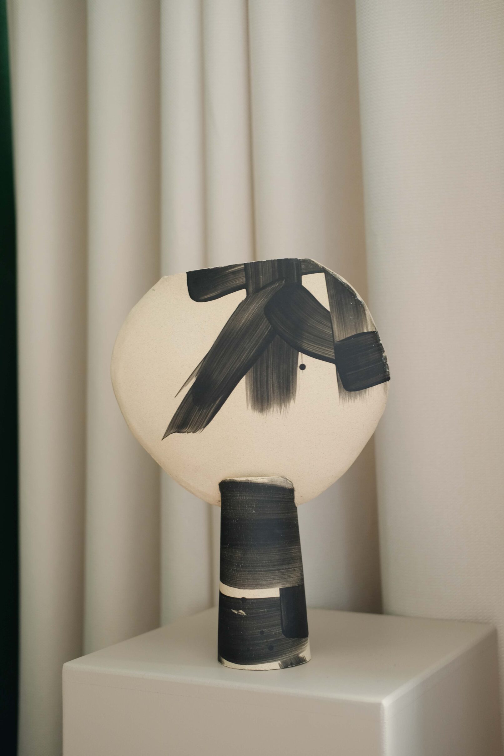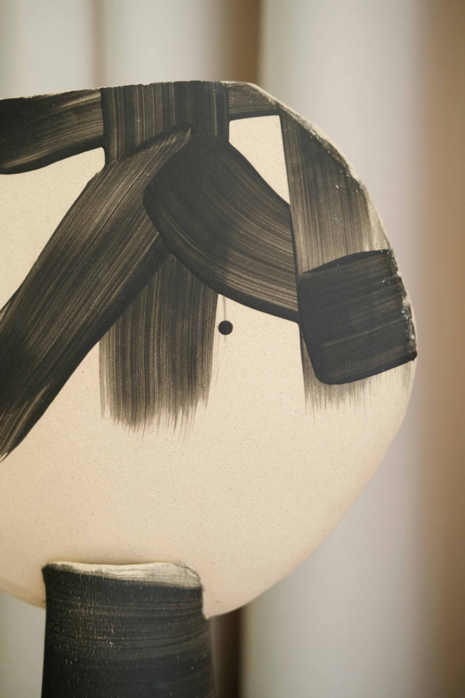 Vases PAIX en grès ivoire, calligraphie à l’engobe noire, dimensions variables