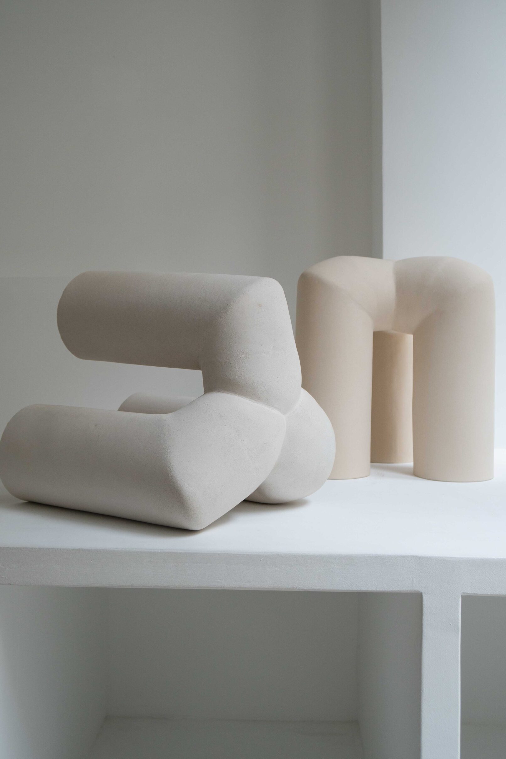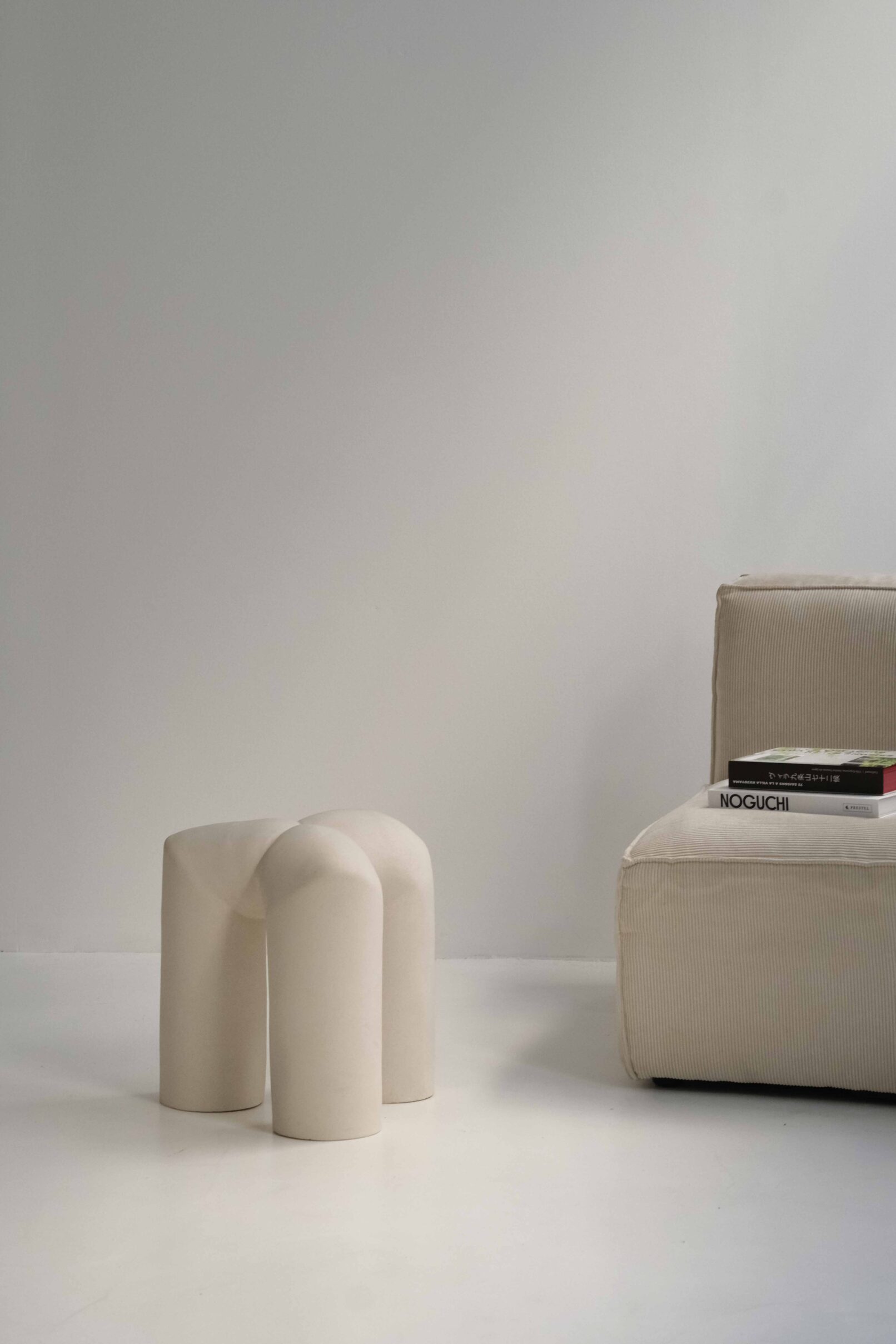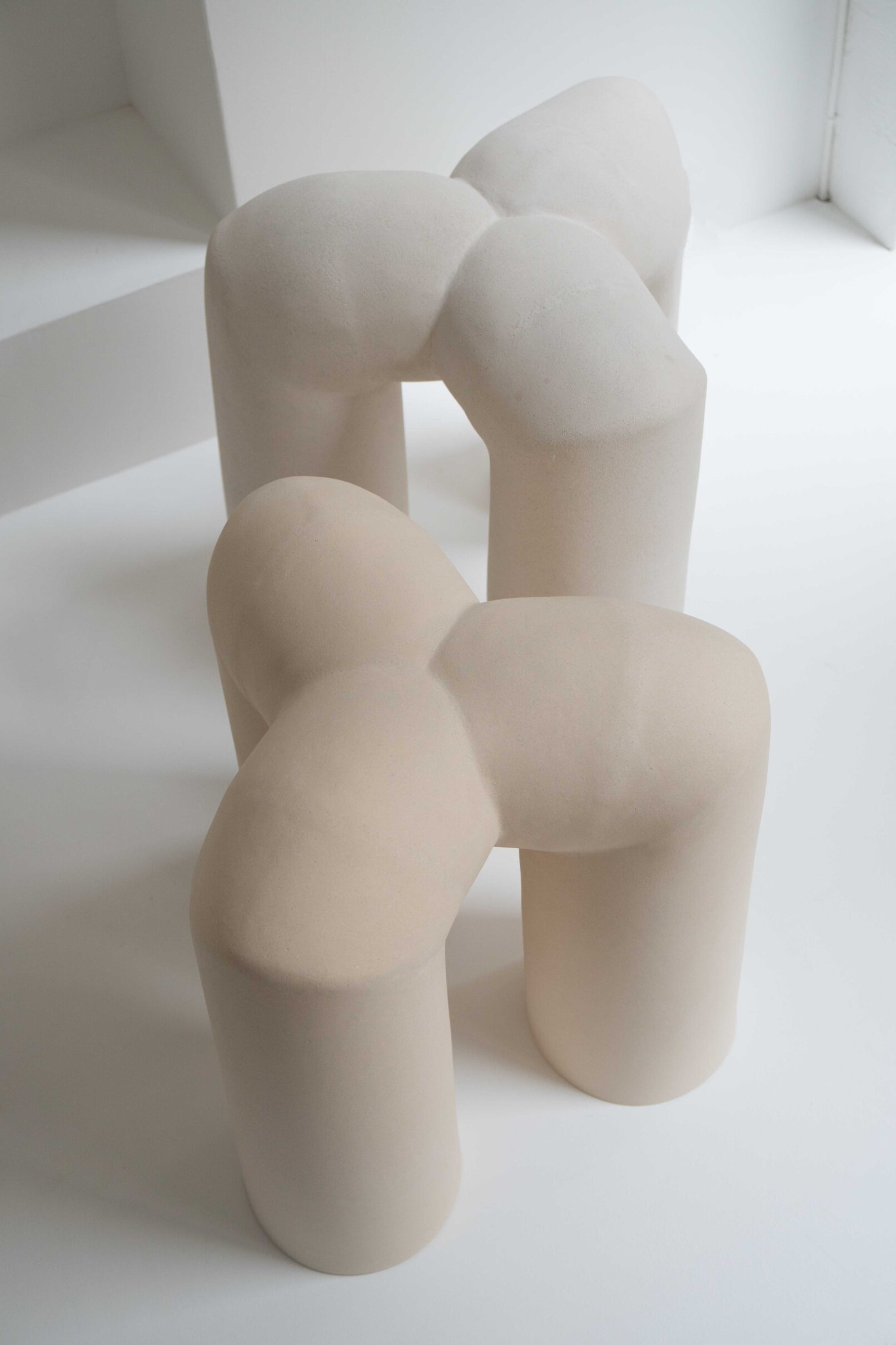 Tabouret sculpture en grès ivoire ou blanc, dimensions 40 x 36 x 36 cm, poids 12kg