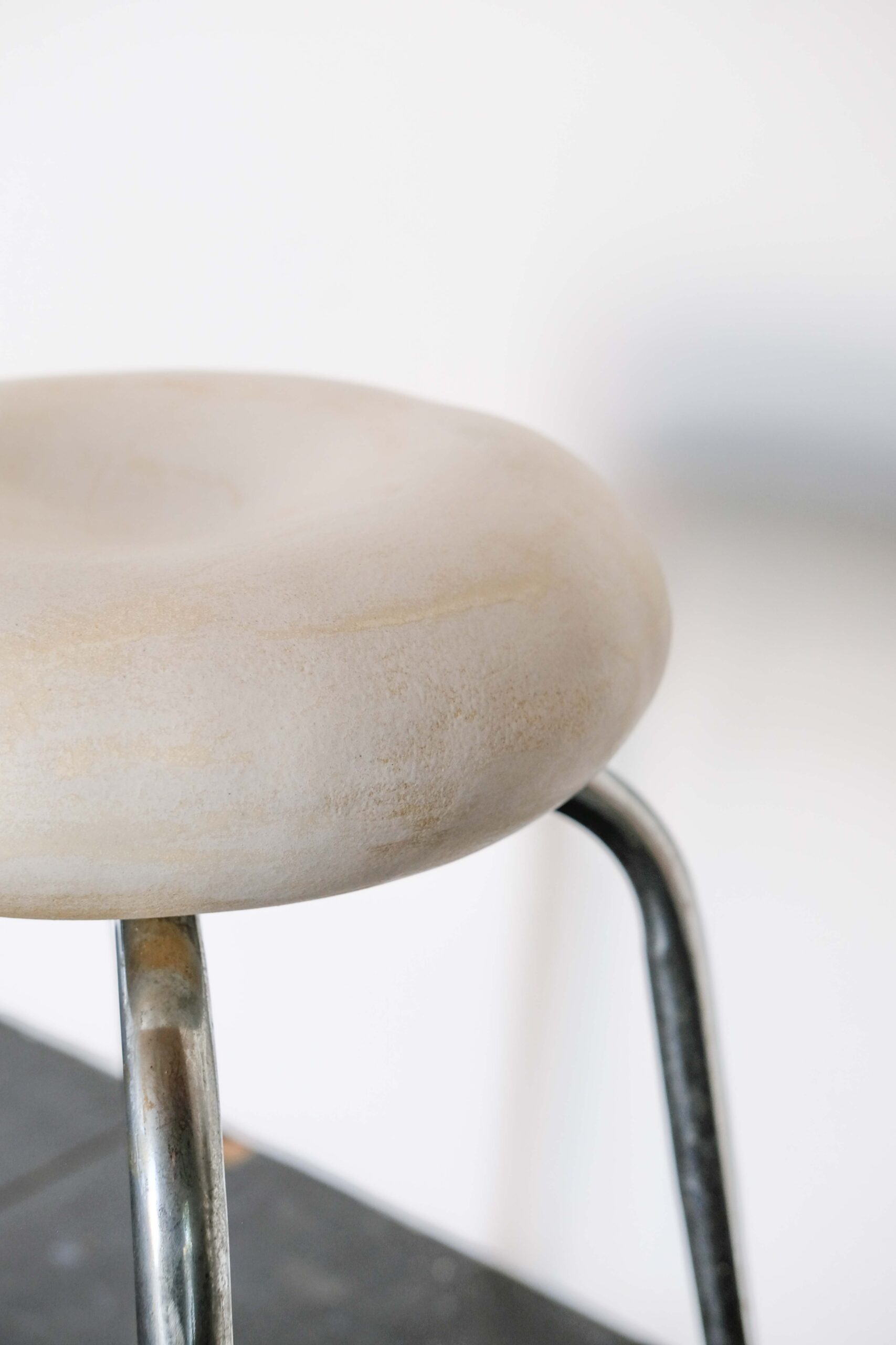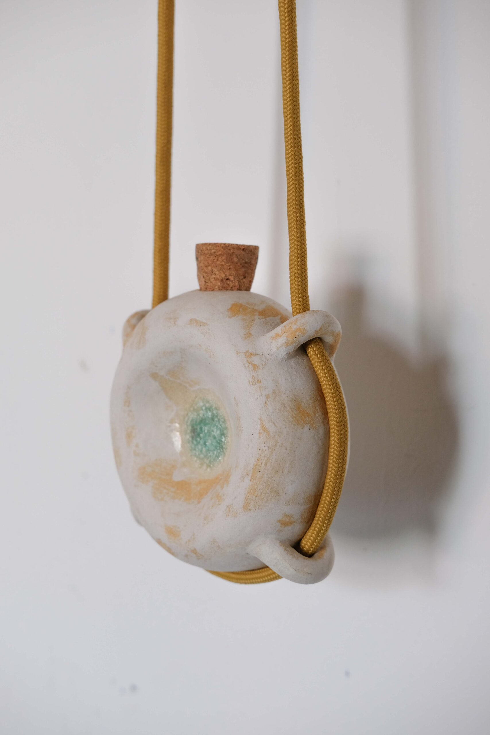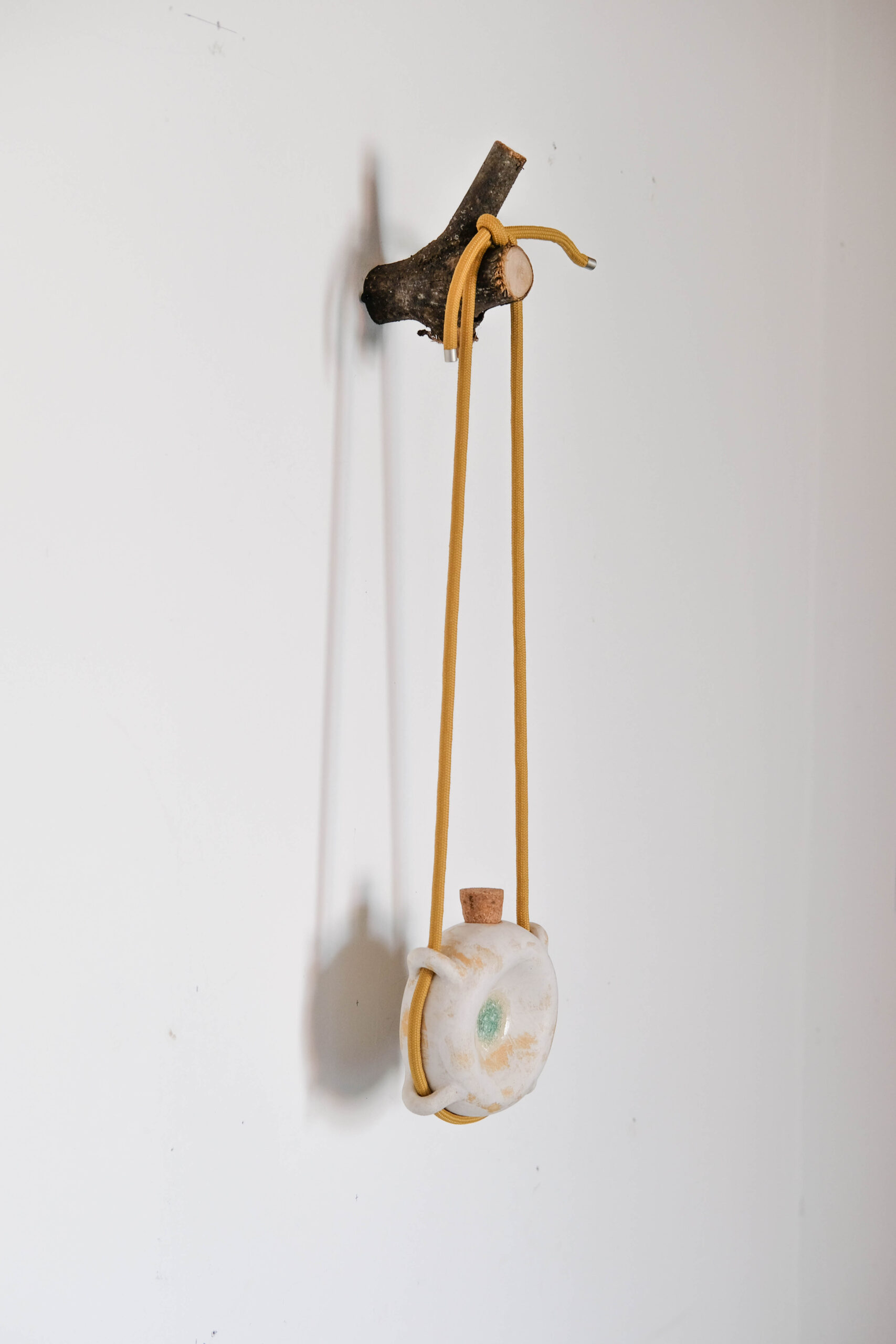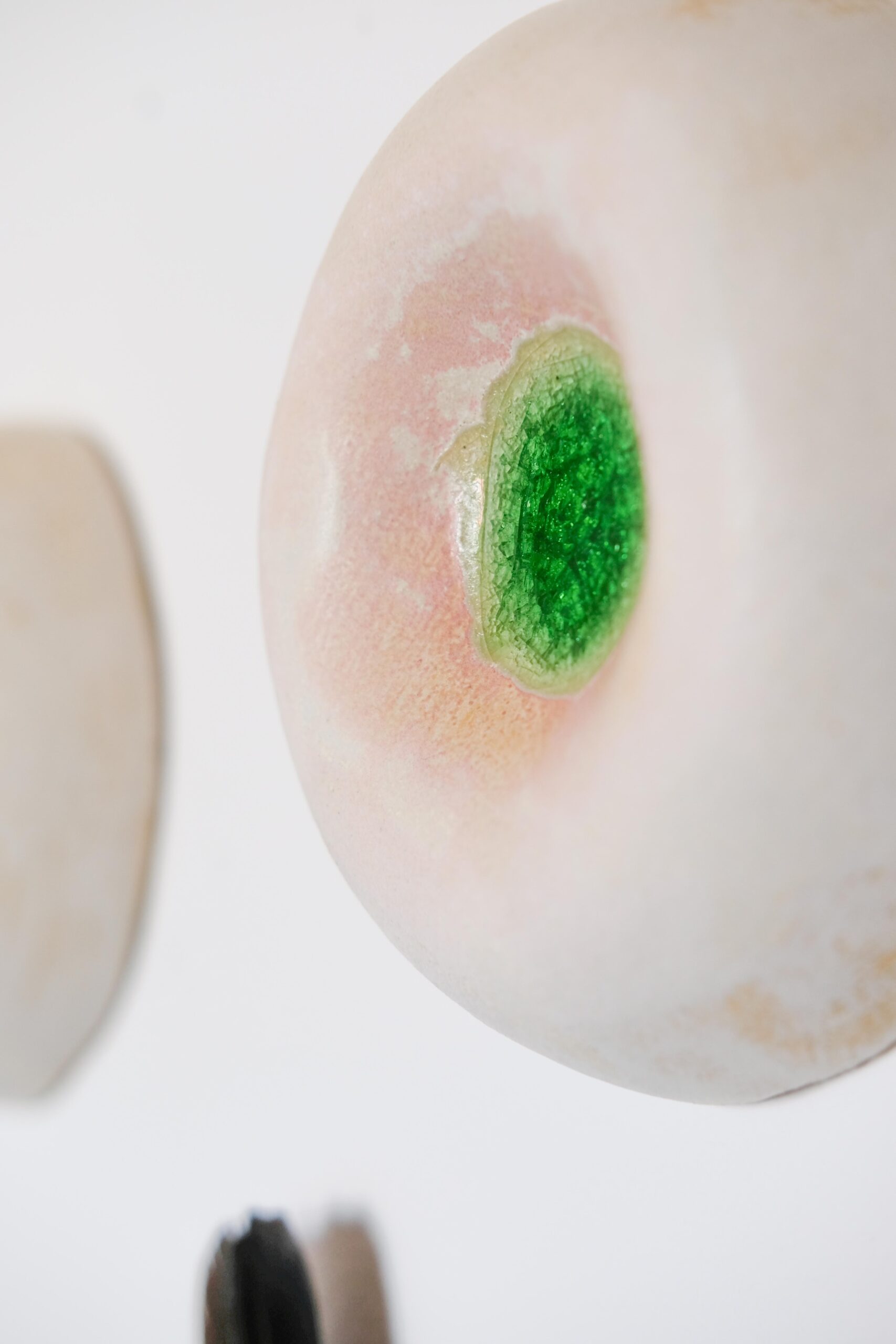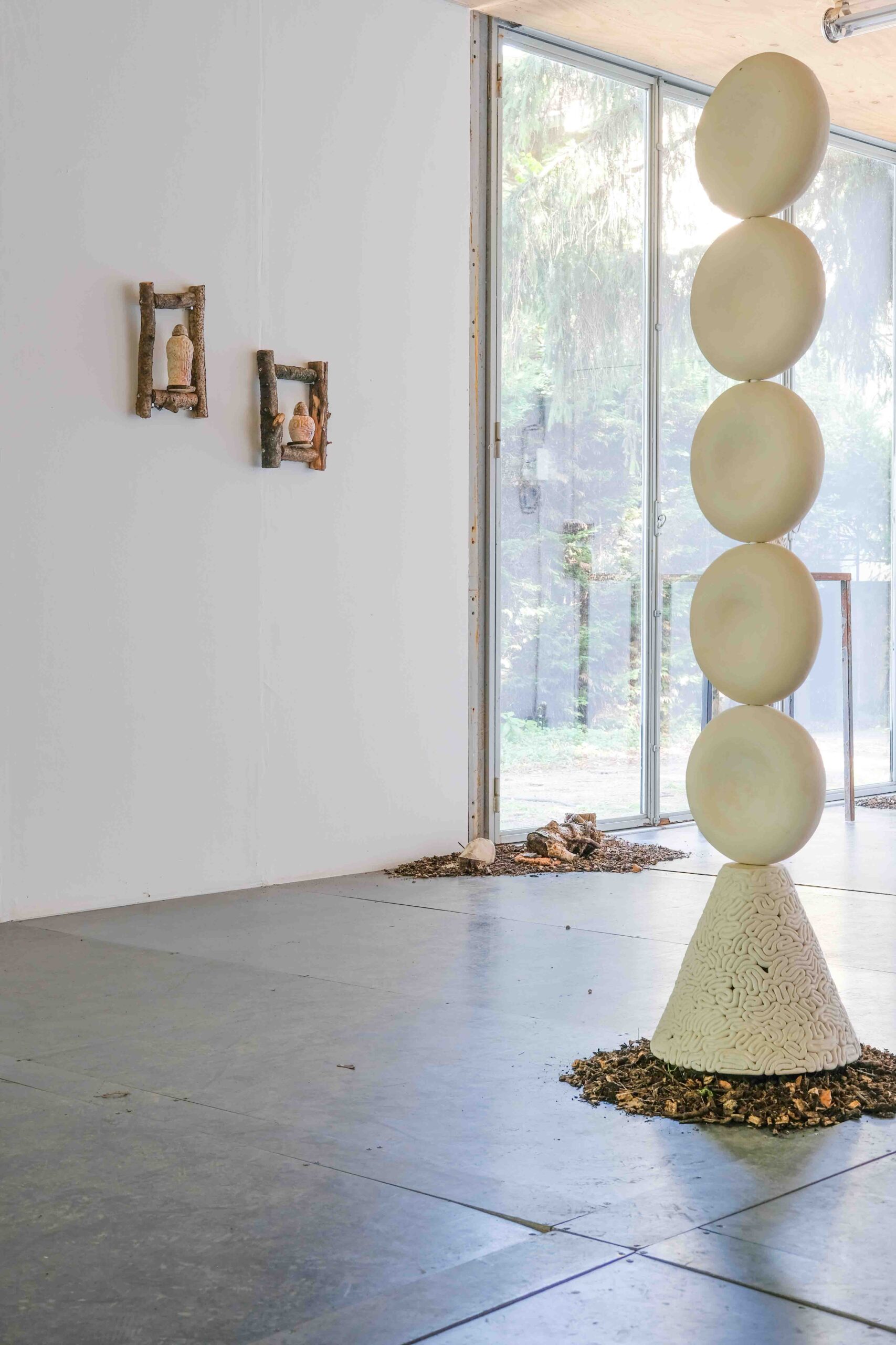 Le lieu en connexion avec le vivant m’a conduit à une recherche autour de la forme et de la fonction du globule rouge appliqué aux objets. En parallèle, j’ai mené une collecte sur place de matières minérales ou vivantes en expérimentant leurs interactions avec la céramique.