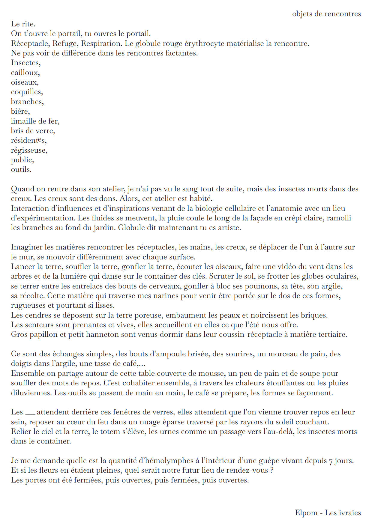 Texte poétique « objets de rencontres » co-écrit Elpom x Les Ivraies