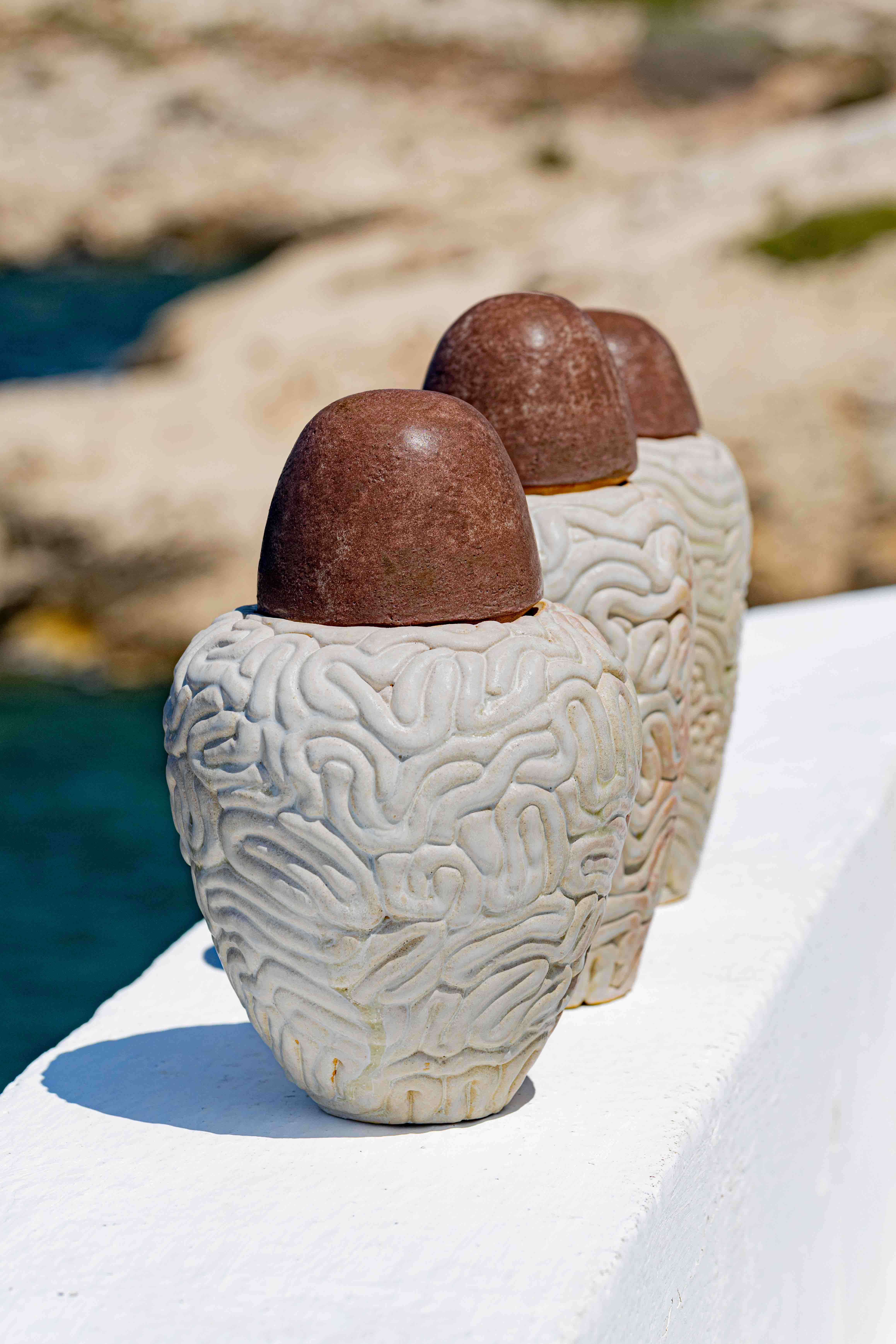 Dans cette réflexion collective autour des VAISSEAUX funéraires menée par Caroline Pelletti Victor, je me suis inspirée des vases canopes pour créer les 4 urnes funéraires CANOPE O1, CANOPE E1, CANOPE N1, CANOPE S1.